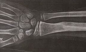 Na vier weken werd het gips verwijderd en werd een nieuwe foto genomen. De breuk was goed genezen. Zelfs de uiteinden van de breuk waren bijna weer recht aan elkaar gegroeid.